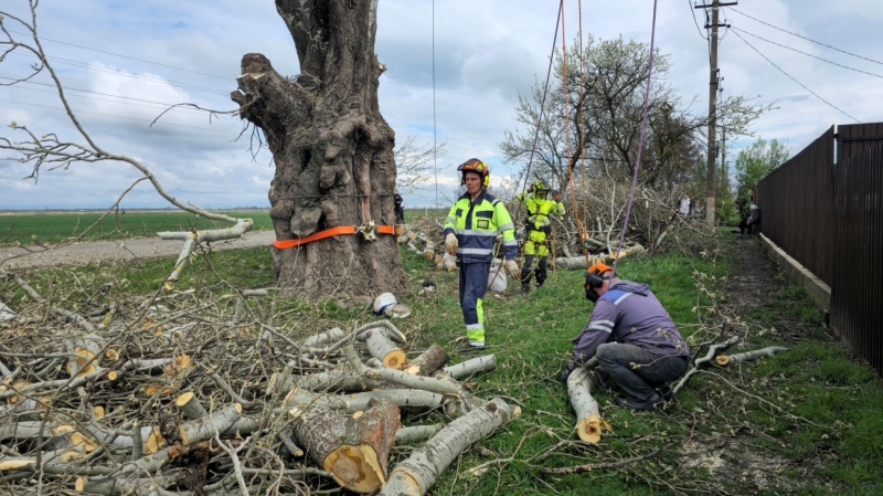 - Спил деревьев любой сложности, включая аварийные и труднодоступные;